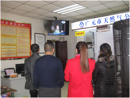 為提高用戶安全使用天然氣常識,旺蒼分公司制作安全用氣宣傳動畫及冬季用氣安全常識視頻,在大廳進行循環(huán)播放,這種通俗易懂的安全宣傳方法得到了旺蒼市民的一致好評,讓公司“用心溝通,用愛服務”的服務理念更加深入人心。