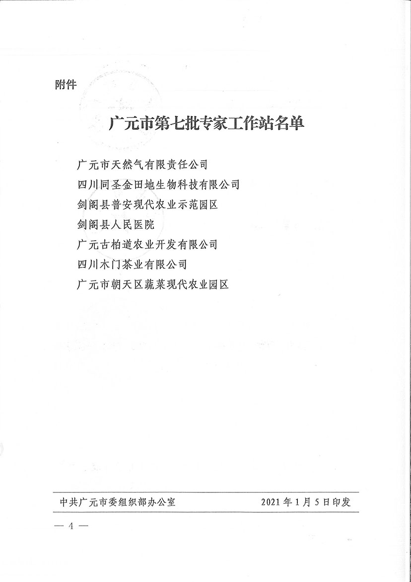 近日,廣元市天然氣有限責(zé)任公司被廣元市組織部等10部門審核批準(zhǔn)認定為廣元市第七批專家工作站。