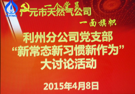 ??? 按照《中共廣元市委組織部 中共廣元市委宣傳部關(guān)于開展“新常態(tài)新習(xí)慣新作為”大討論的通知》精神和公司黨委要求,利州分公司黨支部于2015年4月8日下午組織支部全體黨員、入黨積極分子、中干、職工代表圍繞“認識新常態(tài)、樹立新觀念—怎么看;適應(yīng)新常態(tài)、養(yǎng)成新習(xí)慣—怎么辦;引領(lǐng)新常態(tài)、擔(dān)當(dāng)新作為—怎么干”進行了三個專題的大討論活動。