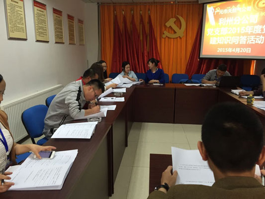 ??? 為認(rèn)真貫徹落實(shí)全市領(lǐng)導(dǎo)班子思想政治建設(shè)暨黨風(fēng)廉政建設(shè)工作會(huì)議精神,引導(dǎo)公司黨員干部認(rèn)識(shí)新常態(tài)、適應(yīng)新常態(tài)、引領(lǐng)新常態(tài),形成“三嚴(yán)三實(shí)”價(jià)值取向,進(jìn)一步推動(dòng)公司天然氣產(chǎn)業(yè)發(fā)展,為加快建設(shè)“美麗廣元、幸福家園”凝聚力量。2015年6月20日,利州分公司黨支部組織全體黨員和積極分子開展了黨建知識(shí)問答活動(dòng)。