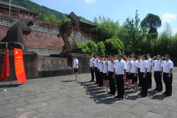 ??? 為紀(jì)念中國共產(chǎn)黨建黨96周年,深入開展愛國主義教育,縱深推進(jìn)“兩學(xué)一做”學(xué)習(xí)教育常態(tài)化制度化,激發(fā)黨員干部的歷史使命感和社會(huì)責(zé)任感,6月26日,利州分公司黨支部聯(lián)合發(fā)展部黨支部組織全體黨員前往南山紅軍文化園重溫入黨誓詞,接受紅色精神洗禮,開展專題黨課教育活動(dòng)。