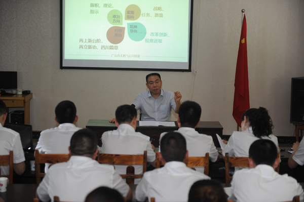 ??? 王書記圍繞“準(zhǔn)確理解把握省十一次黨代會(huì)精神的時(shí)代主題、根本遵循、宏偉藍(lán)圖、重大部署和從嚴(yán)治黨各項(xiàng)任務(wù),勇于擔(dān)當(dāng)作為,推進(jìn)公司跨越發(fā)展”等內(nèi)容進(jìn)行了深入闡述、詳細(xì)講解。并指出,省第十一次黨代會(huì)為川東北地區(qū)及天然氣行業(yè)未來的發(fā)展指明了方向,為公司未來的發(fā)展提供了機(jī)遇,鼓舞了信心。公司發(fā)展部承擔(dān)著公司重大戰(zhàn)略發(fā)展規(guī)劃和政策的制定,在公司處于核心地位;利州分公司承載著公司“十三五”規(guī)劃的80%以上工作,擔(dān)子和責(zé)任更加艱巨。兩個(gè)黨支部更應(yīng)該明白肩上的責(zé)任,發(fā)揮好支部堡壘作用和黨員先鋒模范作用,把黨代會(huì)精神落實(shí)落地,勇于擔(dān)當(dāng)作為,在各項(xiàng)工作中干在實(shí)處、走在前列。